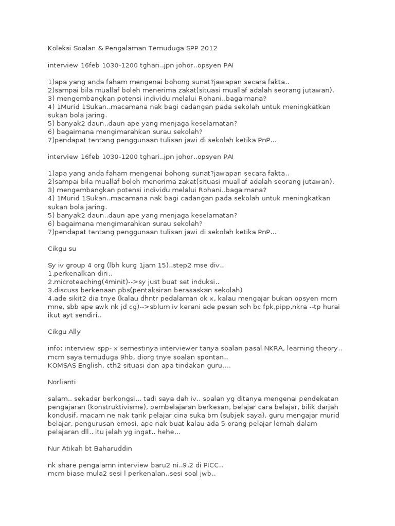 Otak kau itu ialah aset paling berharga kau. Soalan Dan Jawapan Temuduga Ppk Jiran Bentuk Buat Cara Doodle. 5 Soalan Ini Pasti Akan Ditanya Sewaktu Temuduga Hafal Je Terus.